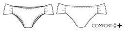 Calça com amarrações laterais, bordas cortadas a fio com contorno franzido e cobertura ondulada. Franzido centro costas para o efeito up ou empina bumbum, se ajustando perfeitamente ao corpo.