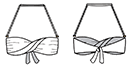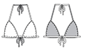 Top triângulo – Os tops triângulos foram desenvolvidos para quem quer uma maior cobertura que os cortininhas. São diversas modelagens, que contam ou com amarrações nas costas ou fechos, podem ter alças reguláveis e bojos removíveis.